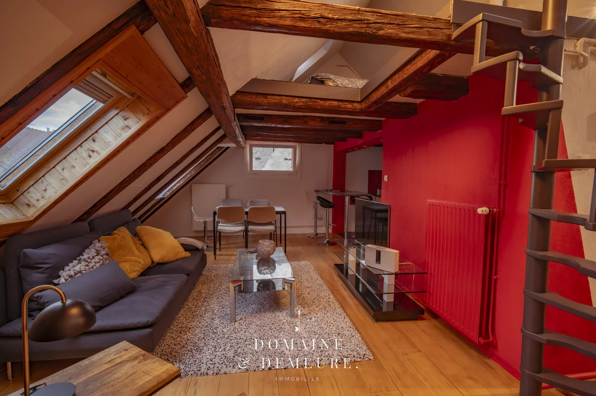 Découvrez ce superbe appartement de 54,4 m² Carrez (79 m² au sol), niché au dernier étage d’un immeuble de caractère au cœur de Strasbourg dans une petite copropriété, à une minute à pied de la Cathédrale et de toutes les commodités.